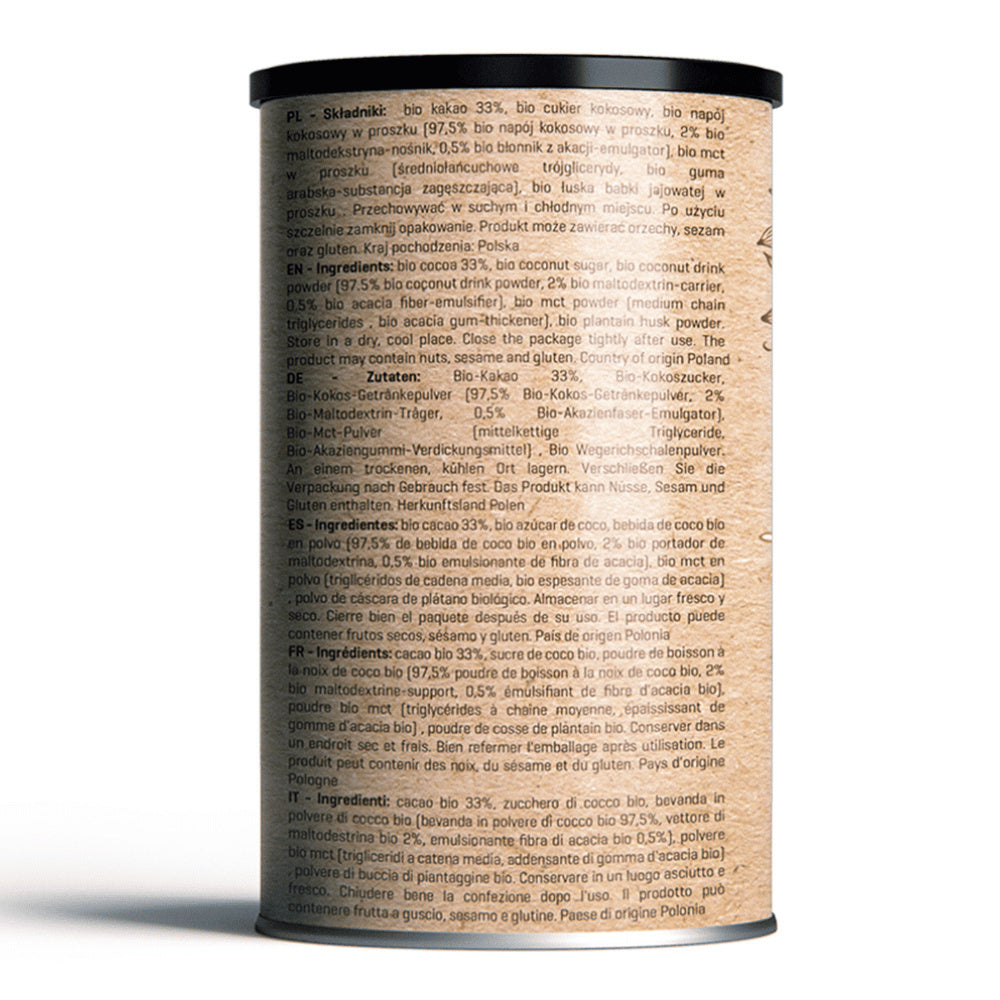 bio kokosový nápojový prášek (97,5 % bio kokosového nápojového prášku, 2 % bio methyldextrin - nosič, 0,5 % akáciová vláknina - emulgátor)
